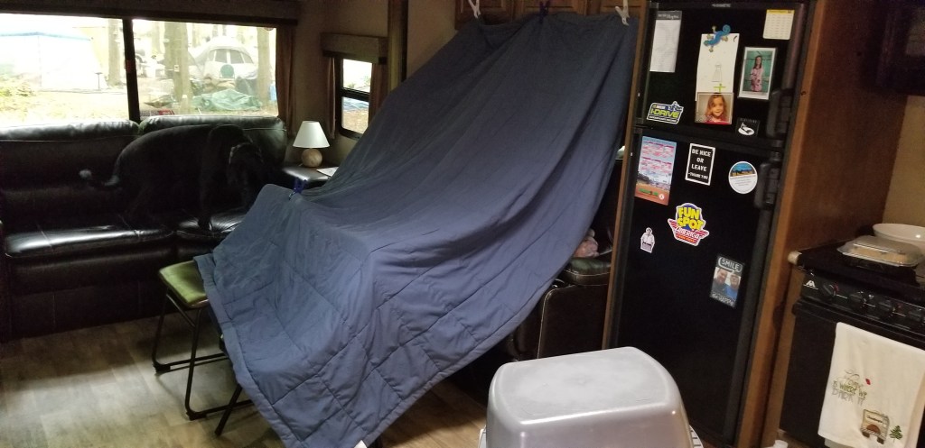COVID19 is becoming more widespread up here, as is the case pretty much everywhere these days. The # of positive cases is rising quickly and hospitals are becoming overwhelmed. Field hospitals are projected to open within the next 2 weeks. We’ll be staying home a lot more going forward, and will have to keep our visits with family limited to Facetime chats for a while. Thanksgiving will be just us two – but at least we have each other, and we actually kind of like each other! LOL Our hearts go out to those, like Paul, who are single and will be alone. – At least he has Samson to keep him company.